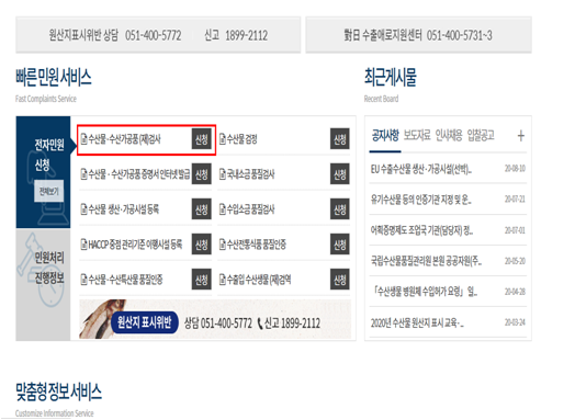 국립수산물품질관리원에 로그인 한 후에 수산물 수산가공품 검사 신청을 합니다.