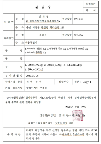 - 위임장 ( 수출자가 제조자와 다를 경우)