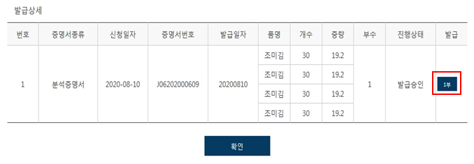 - 발급이력 페이지에서 "발급승인"이 나오면 " 발급상세"를 클릭! 합니다.
