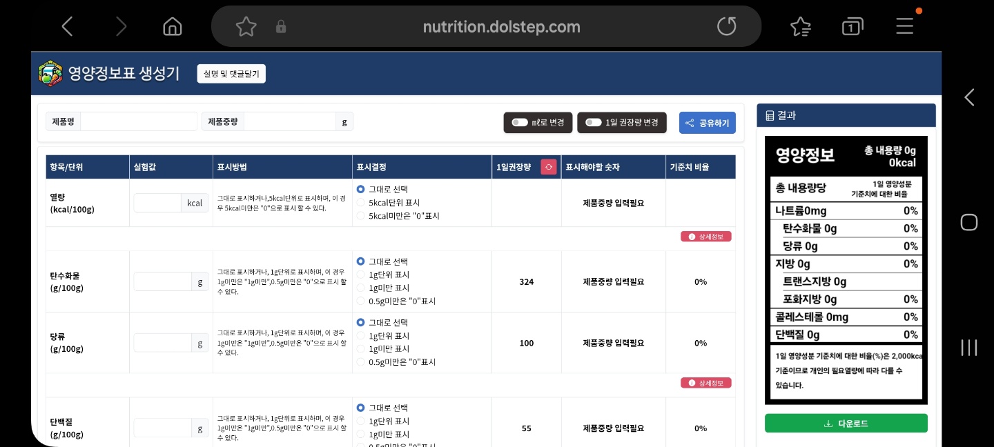 ★영양정보표 생성기 : https://dolstep.com/nutrition <- 클릭!!